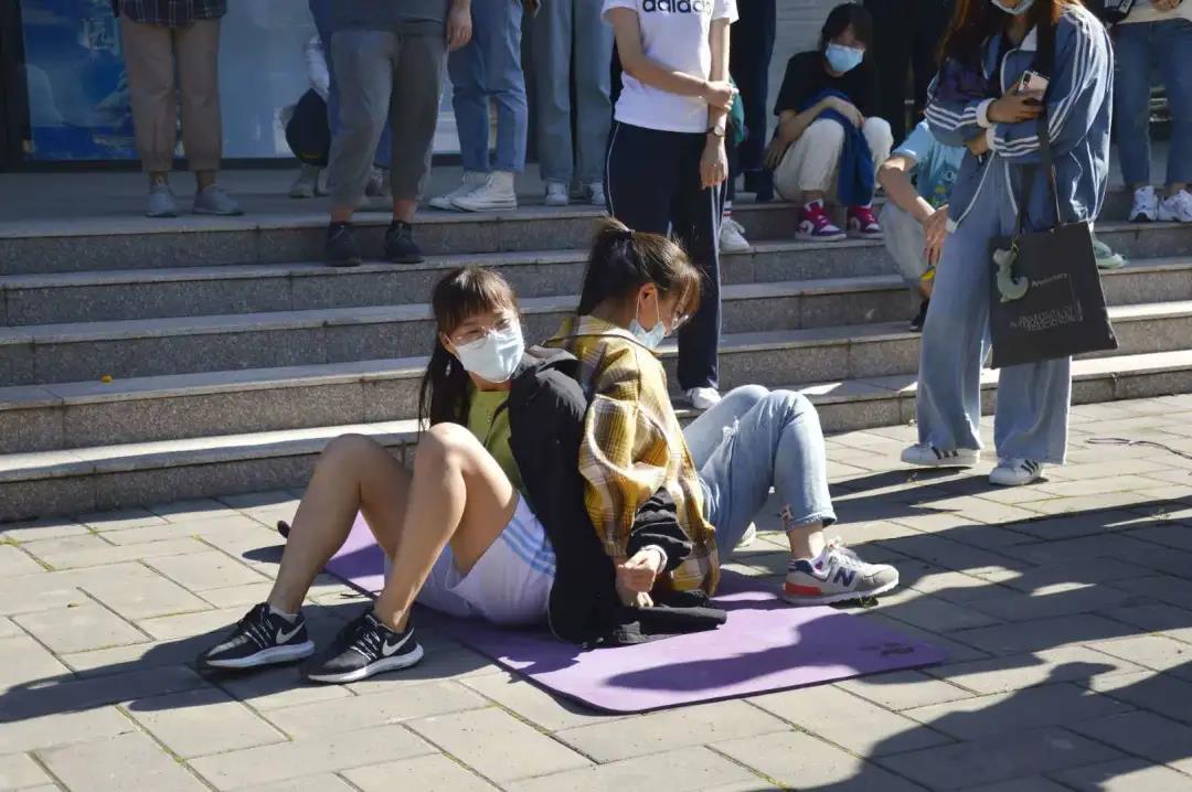 科技楼前,每个班级分为两队进行比赛,两两配合,背夹气球运至终点,终点挤爆气球为胜,大家玩得不亦乐乎!在“嘣嘣嘣”欢乐声中,活动气氛达到了高潮。