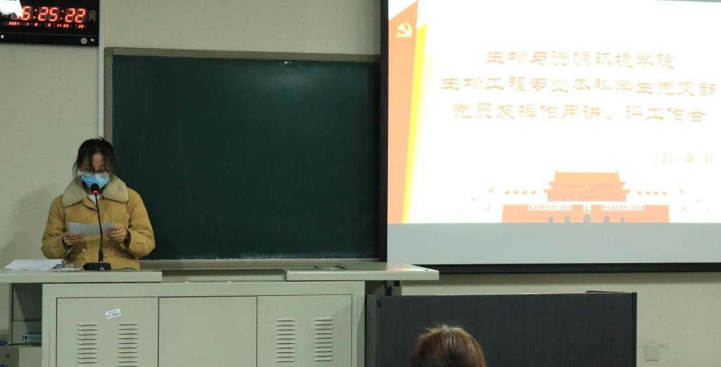 预备党员全修治平介绍了他参加生物工程1班团日活动的情况,他用习近平总书记在国家公祭日的讲话对生物工程1班进行了思想指导工作,并指正了在参加团日活动过程种发现的一些问题;预备党员刘诗园结合自己的学习经验对生物工程专业的学生进行了朋辈指导,讲解了考试的重点题型。点评人生物工程2班班长甄磊就一学期以来,党支部积极为班级同学进行学业、生活以及思想素质的引领与指导表示感谢,并表明在今后的日子里积极向党组织学习,做好班级建设建设。