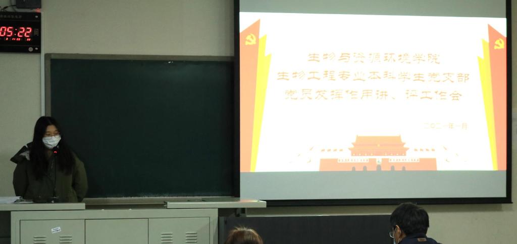 2021年1月6日,生物工程专业本科党支部在教学楼B座106举办党员作用发挥讲评活动,活动以“党员讲述自身先锋模范作用发挥和服务对象点评”的形式开展,旨在引导学生党员强化党员身份,增强党员意识,主动担当作为,更好地发挥先锋模范作用。出席本次会议的有:校党委副书记高喜军,学院党总支书记袁中立,学院党总支副书记、院长马兰青,学院党总支副书记、副院长俞涛,学院学生党支部书记高亭豪、汪丽、赵筱萌、毕扬、梁琼,以及生物工程专业本科学生党支部全体党员、部分积极分子。会议由支部党员朱梦军主持。