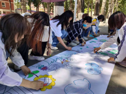 活动面向太阳集团tcy8722全体学生,活动地点为体育场西侧路边,参与活动的同学在活动处领取一只涂鸦笔,在工作人员提前绘制好的画布上进行填色,并签名留念。活动现场共幅画布,一幅是同学们自主涂鸦写有“推动绿色发展,促进人与自然和谐共生”的画布,表达同学们对共建美好环境的憧憬与向往。另一幅是由同学们共同绘制的寓意美好生活的图画,蓝天白云青山绿水,表现人与自然和谐共生的幸福画面。