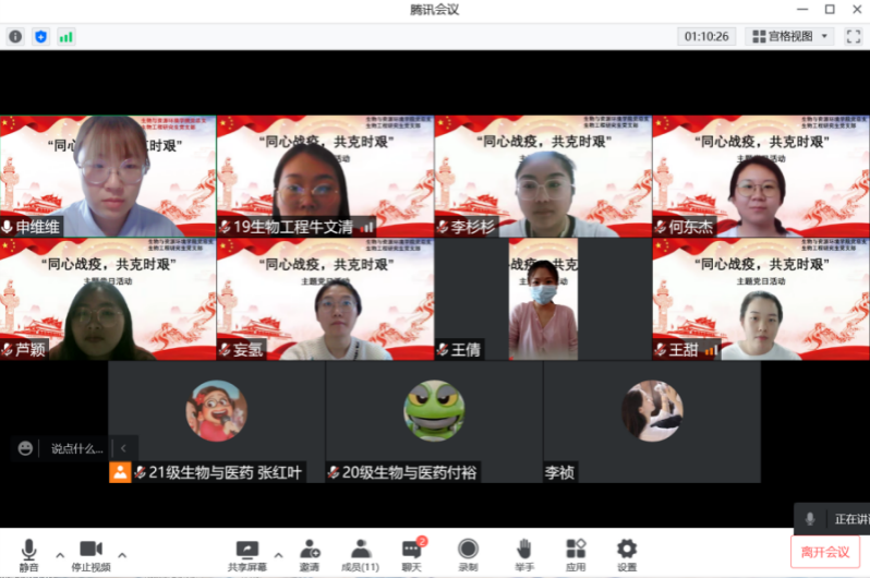 为深入学习贯彻习近平总书记关于疫情防控的重要指示精神,落实北京市和学校疫情防控相关政策,充分发挥在校学生党员在校园疫情防控工作中的先锋模范作用,5月26日太阳集团网站8722生物工程研究生党支部以线上线下结合的方式组织召开“同心战疫,共克时艰”主题党日活动,后勤基建处副处长刘林场应邀参加。活动由生物工程研究生党支部书记申维维主持。