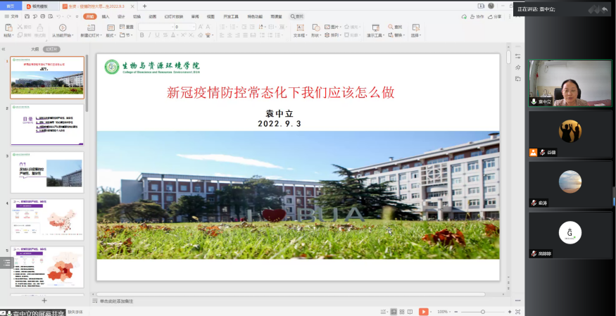 袁中立首先代表学院全体教师对2022级同学成为学院大家庭的新成员表示热烈欢迎,祝愿同学们克服新冠疫情影响,完美开启大学新生活。袁中立在新生入学第一课上,重点给全体新生讲授了疫情防控“大思政课”。指出,当前国内新冠疫情多点频发,北京疫情防控叠加高校秋季学期开学等情况“外防输入”形势严峻复杂,为确保校园安全稳定,同学们要深刻认识国家“动态清零”总策略的必要性和科学性,指出“动态清零”是我们党“以人民为中心”执政思想的重要体现,是坚持把人民群众的生命安全和身体健康放在第一位的必然要求,是立足我国国情做出的科学研判,充分体现了我们国家的制度优势。同时,结合具体案例分析了目前学校校园疫情防控从严从紧的必要性,引导同学们要充分理解学校疫情防控各项措施。