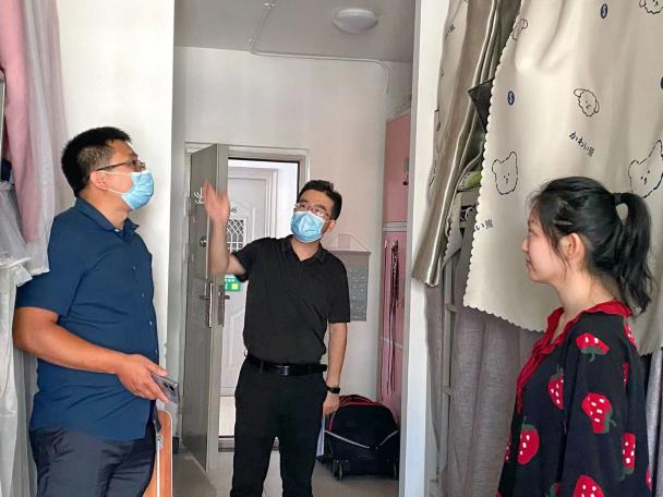 辅导员细心询问了同学们返校后的日常情况,认真听取了学生的想法和诉求,并就相关问题进行了交流,提醒同学们要严格履行个人疫情防控责任,创建整洁文明的宿舍环境,共同维护校园安全稳定,确保同学们身心健康,让家长和老师放心。