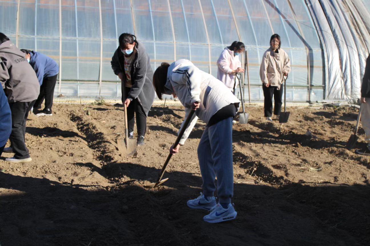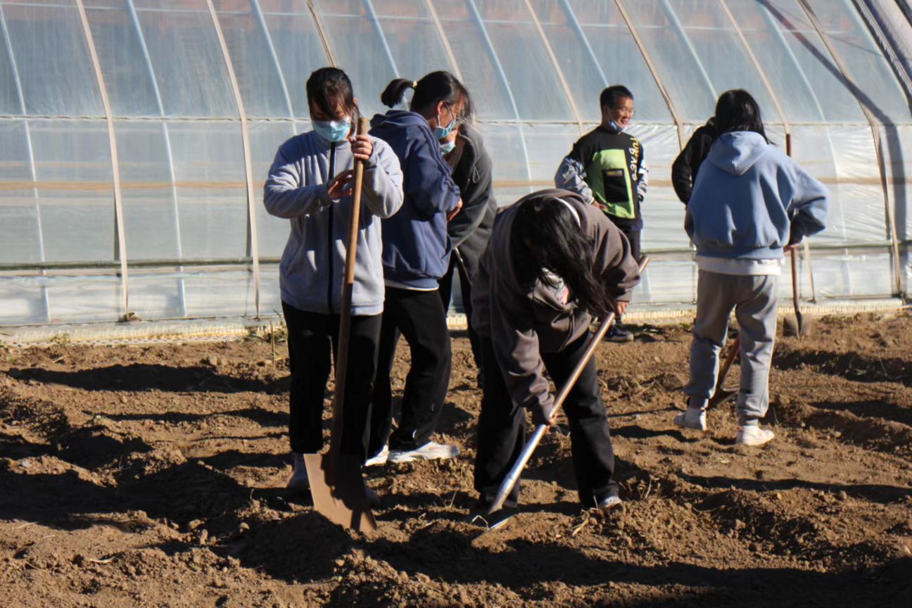 学工部赵晓萌老师给同学们说到,“打地垄在农事活动中至关重要,现在大多数同学们都没有农事操作的体验,本次活动为同学们提供了学习的机会,通过实践培养同学们的劳动精神、树立学农爱农的意识,让同学们对农事的认知不仅仅停留在书本理论上。”实践教学基地孙老师为同学们分配了劳作区域,耐心指导学生使用农具打垄。同学们迅速投入到实践中,用铁锹将土铲出堆成田埂,再将之修缮,最后用耙子松土,完成全部环节。在经过老师悉心的指导后,同学们愈发娴熟,热情也高涨,纷纷提出希望学校给安排更多的农事实践机会,让他们得到更多的锻炼。