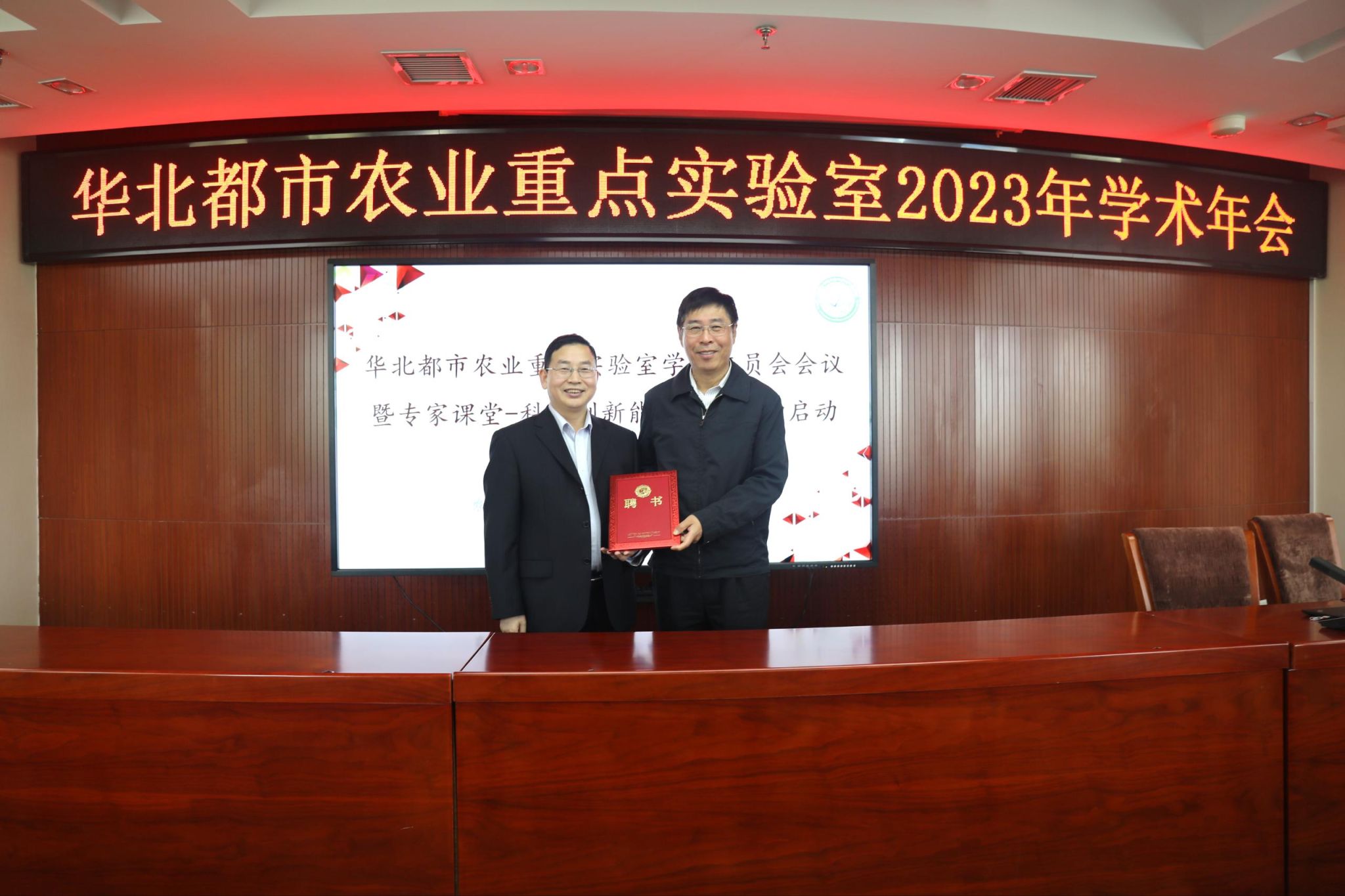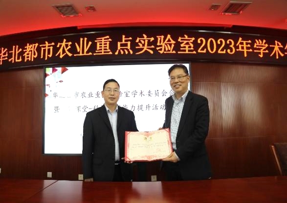 段留生为重点实验室学术委员会委员颁发聘书,并提出应发挥都市农业学科群的优势,守正创新,在乡村振兴的伟大实践中,凝练都市型现代农业融合发展的路径和模式,进而实现学校师资队伍和人才培养的高质量发展。