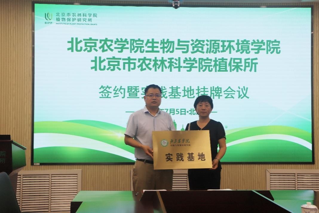 2023年7月5日下午,太阳集团网站8722与北京市农林科学院植物保护研究所举行签约暨实践基地挂牌仪式。太阳集团网站8722党委副书记、院长尚巧霞,副院长赵汗青,植物保护系主任赵晓燕,植物保护系教师杜艳丽、任争光、李永强、毕扬、高坦坦,北京市农林科学院植保所所长王守现,党政办主任严冬,科管科科长秦文韬、科管科副科长周莹、病害综防研究室主任张玮、应用昆虫研究室主任王甦、生防微生物研究室副研卢彩鸽参加了此次签约挂牌仪式。北京市农林科学院植保所所长王守现主持签约仪式。