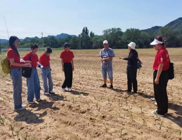 在密云巨海阔蔬菜种植专业合作社,师生们参观学习了基质化蔬菜种植技术。在设施温室内,刘笑冰教授就近年来依托合作社与科技小院开展的果蔬现代化基质筛选种植培育供销和低质林地的还耕改造与提升等工作做了介绍。在复垦田地里,石生伟老师结合地形地貌和土壤质量,讲述了耕地保护与粮食安全的重要性。