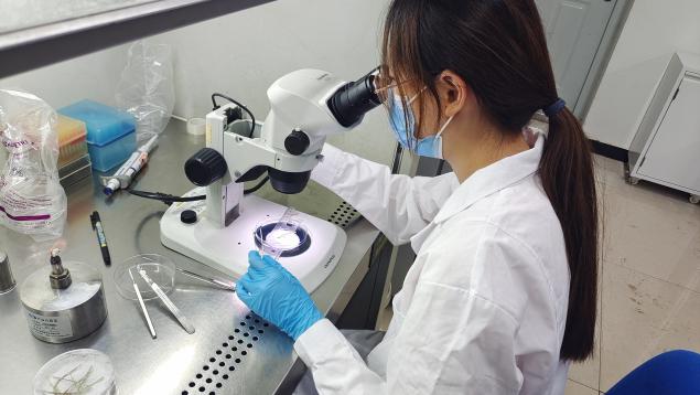针对果农对生长健康、高质量、高产量草莓脱毒苗的实际需求,团队拟引进得具有优良性状的草莓苗,并进行繁育及脱毒苗的生产,7月14日,实践团队来到绿富隆基地采集优良性状的草莓苗匍匐枝进行扩繁留种。同时成员们也在基地深入交流,了解草莓植株的培育过程并进行实验优化,致力于用更低廉的成本培育出更优质的草莓。在此基础上,成员们还进行着更高水平的草莓苗脱毒实验,需剥草莓匍匐茎茎尖,在保留优良性状草莓特性的同时,优化草莓原原种,进行组培苗脱毒处理,为了让农户可以栽培上更优质的种苗进行着努力。