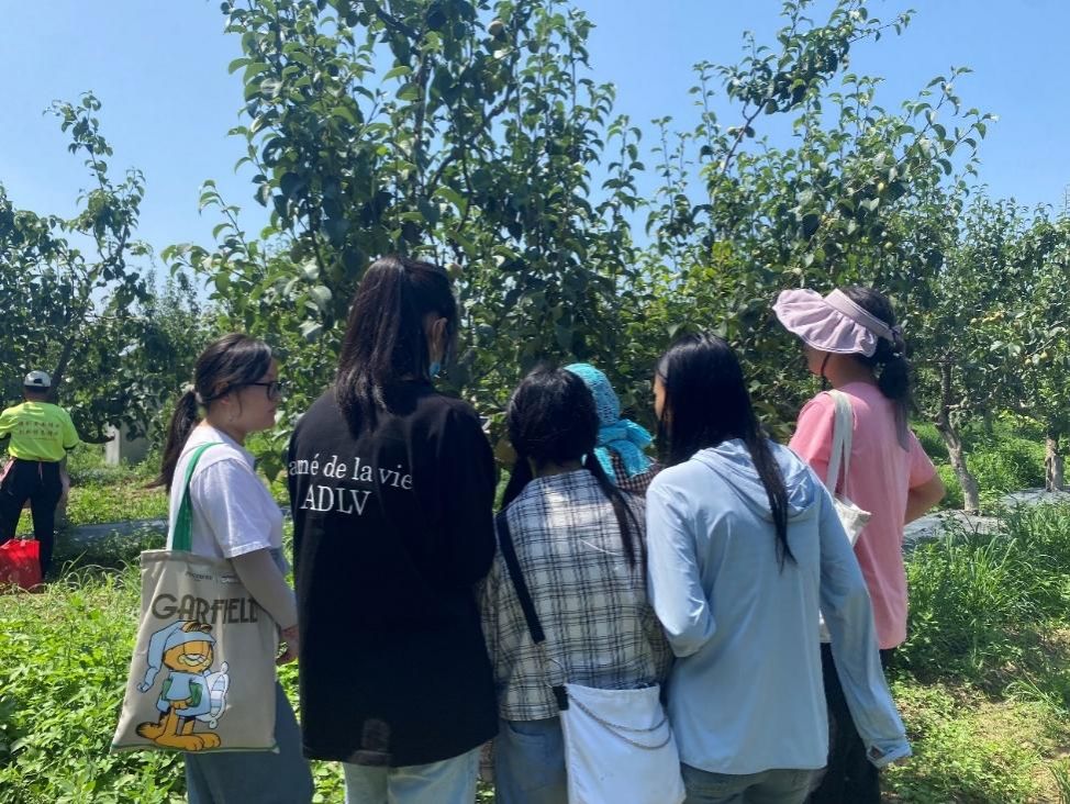为贯彻落实习近平新时代中国特色社会主义思想主题教育深入开展,将学习精神转化为支农爱农、强农兴农实践,2023年7月4日,22级应用化学一班到北京大兴区魏善庄镇精品梨园开展一次农耕实践活动,受到北京市大兴区园林绿化局魏善庄林业工作站支部书记马继红和梨园技术经理李刚的热情接待。