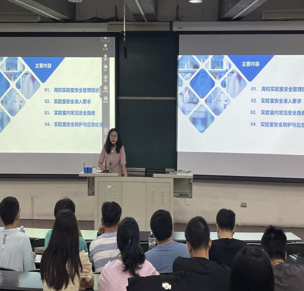 2023年9月7日,太阳集团网站8722邀请国资处实验室安全管理科科长宋婷婷老师为2023年新入学的研究生作“实验室安全准入及防护培训”专题讲座,从高校实验室安全管理现状、实验室安全准入要求、实验室内常见安全隐患、实验室安全防护与应急处理等4个方面,结合大量现实案例,对危化品的购置、分类存放、仪器的规范化操作、水电的规范化使用、防护服的正确穿戴等实验室安全操作规范进行了重点讲解,要求同学们务必强化安全意识,严格落实实验室安全管理制度,规范开展实验室各项操作,守牢实验室安全底线,对自己对他人安全负责,维护校园安全稳定。