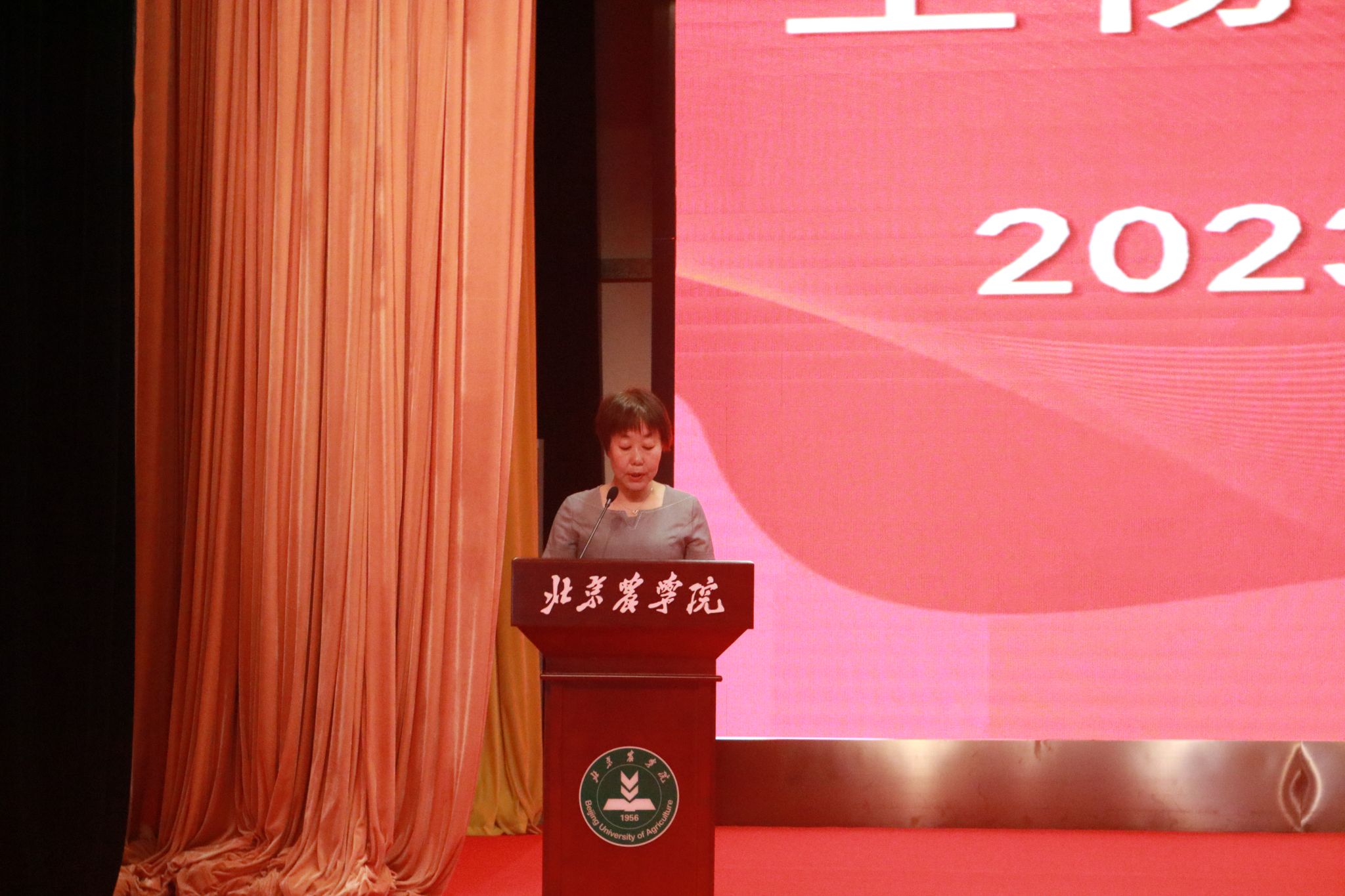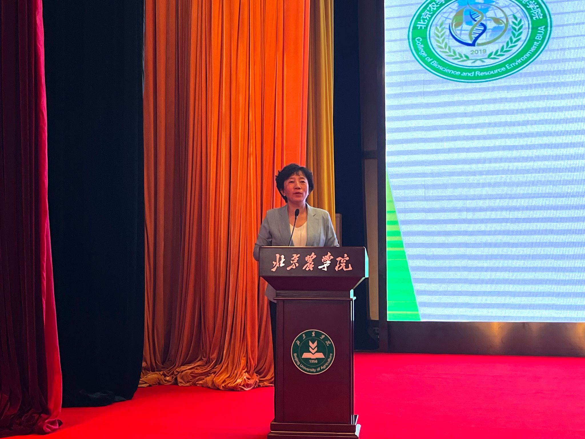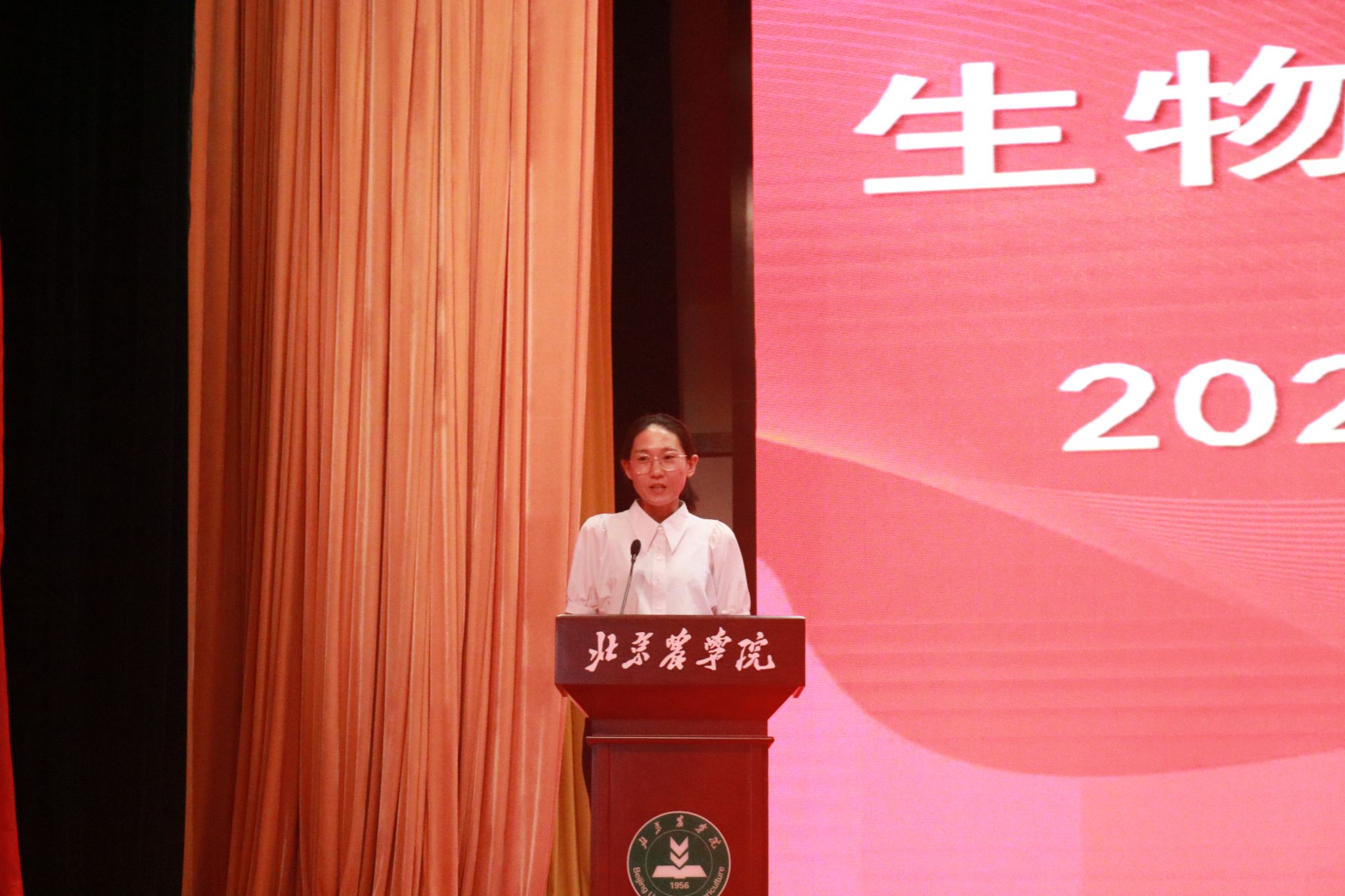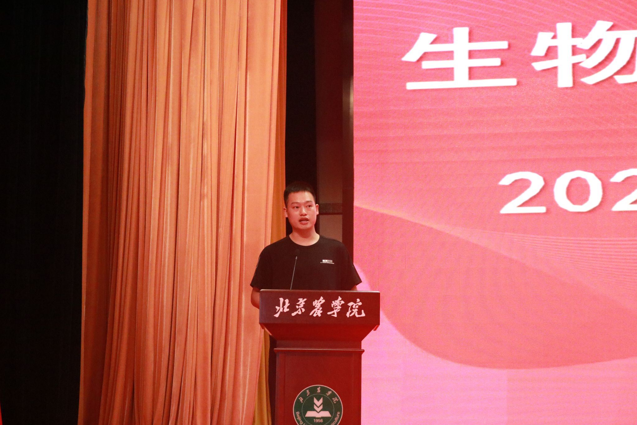 校友代表、北京市特色作物创新团队昌平区综合试验站站长祝宁,结合自身经历讲述了农业技术推广人员的价值,让新同学们知晓未来的农业已经不是传统的面朝黄土背朝天的模式,而是要应用科技化、信息化、智慧化的现代技术手段,全面实现乡村振兴。祝愿学弟学妹们能珍惜、享受美好的大学时光,博观而约取,厚积而薄发,为今后走向社会,服务社会打下坚实的专业基础、思想基础,毕业后投身农业领域,做一个懂农业、爱农村、爱农民的“三农”战线工作者,做一个“拿得起铁锹,握得住笔杆,守得住初心”的农业践行者。