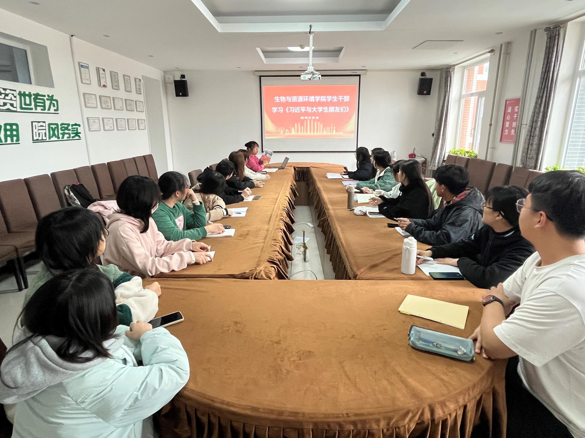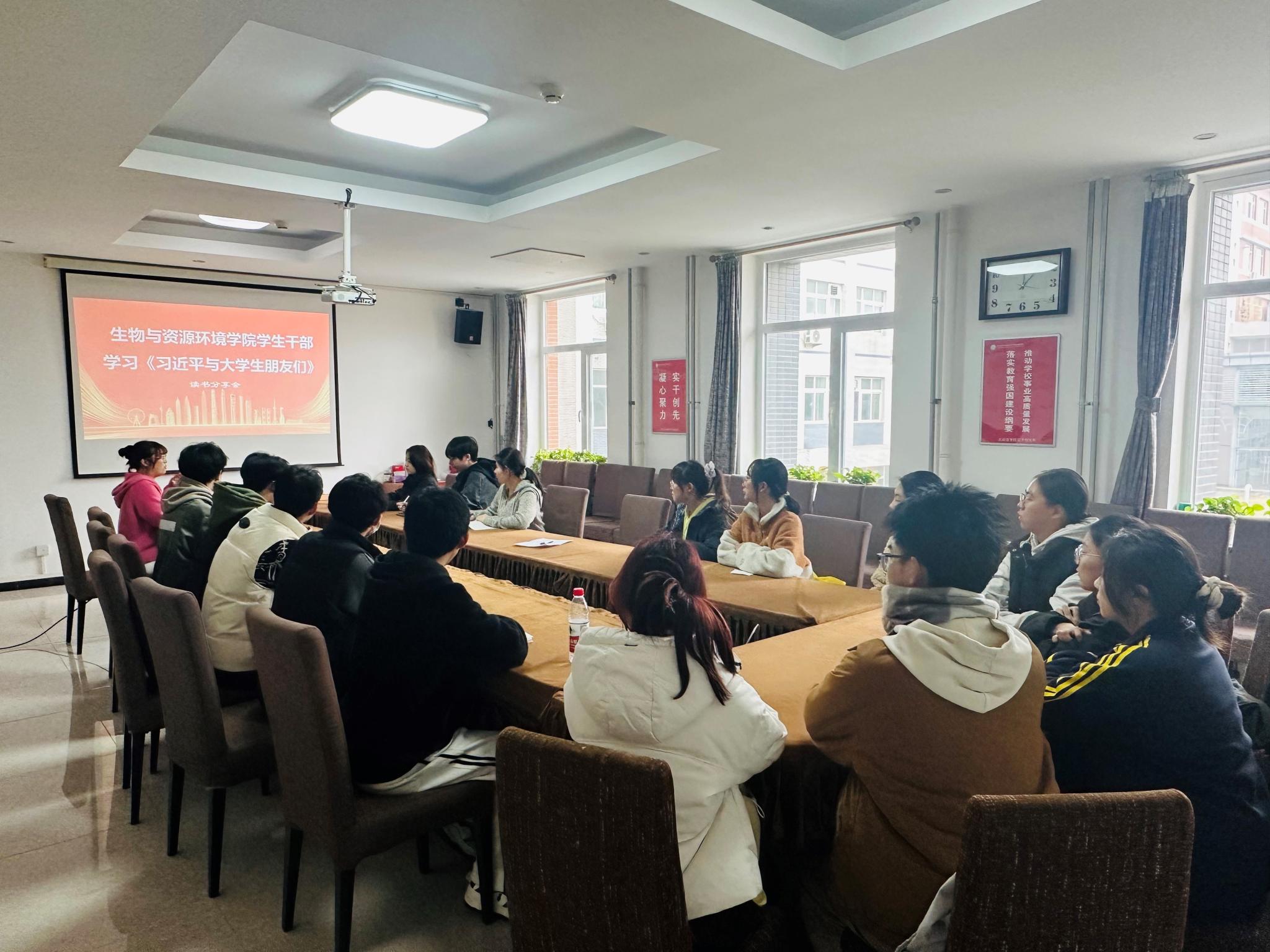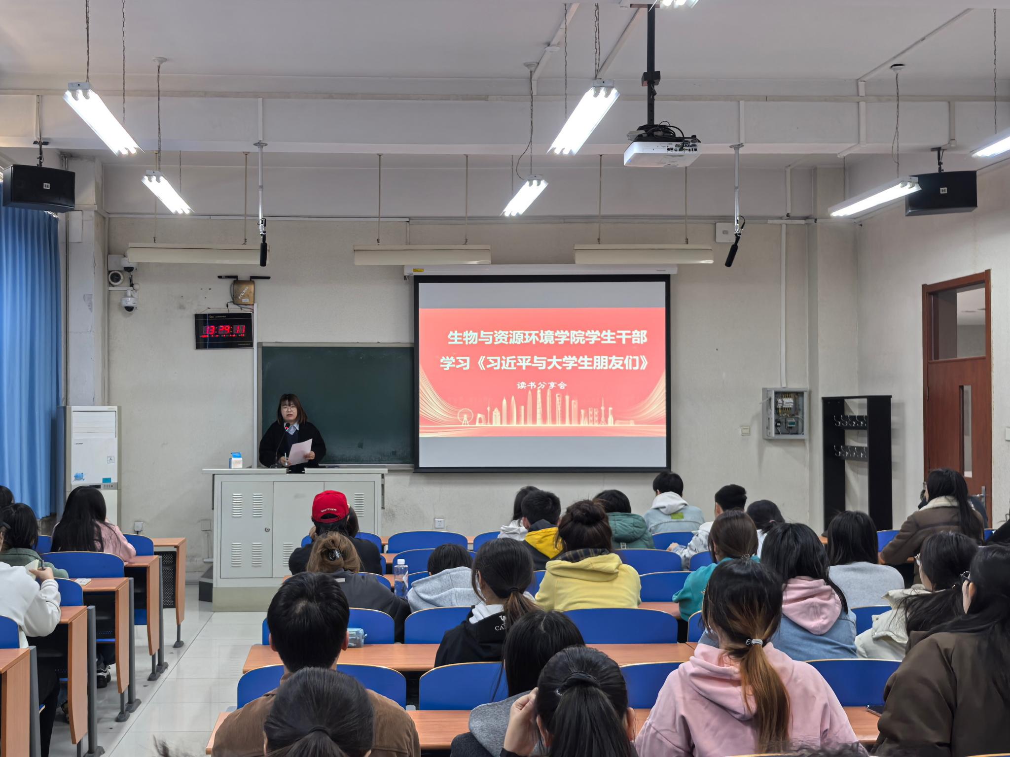 为深入贯彻落实习近平新时代中国特色社会主义思想及习近平总书记关于青年工作的重要论述,珍惜韶华、不负青春,努力成为有理想、有追求、有担当、有作为的新时代大学生。生物与资源环境学院组织团学骨干开展《习近平与大学生朋友们》(第二卷)专题读书分享会,会议由学院团学工作负责人申维维主持。