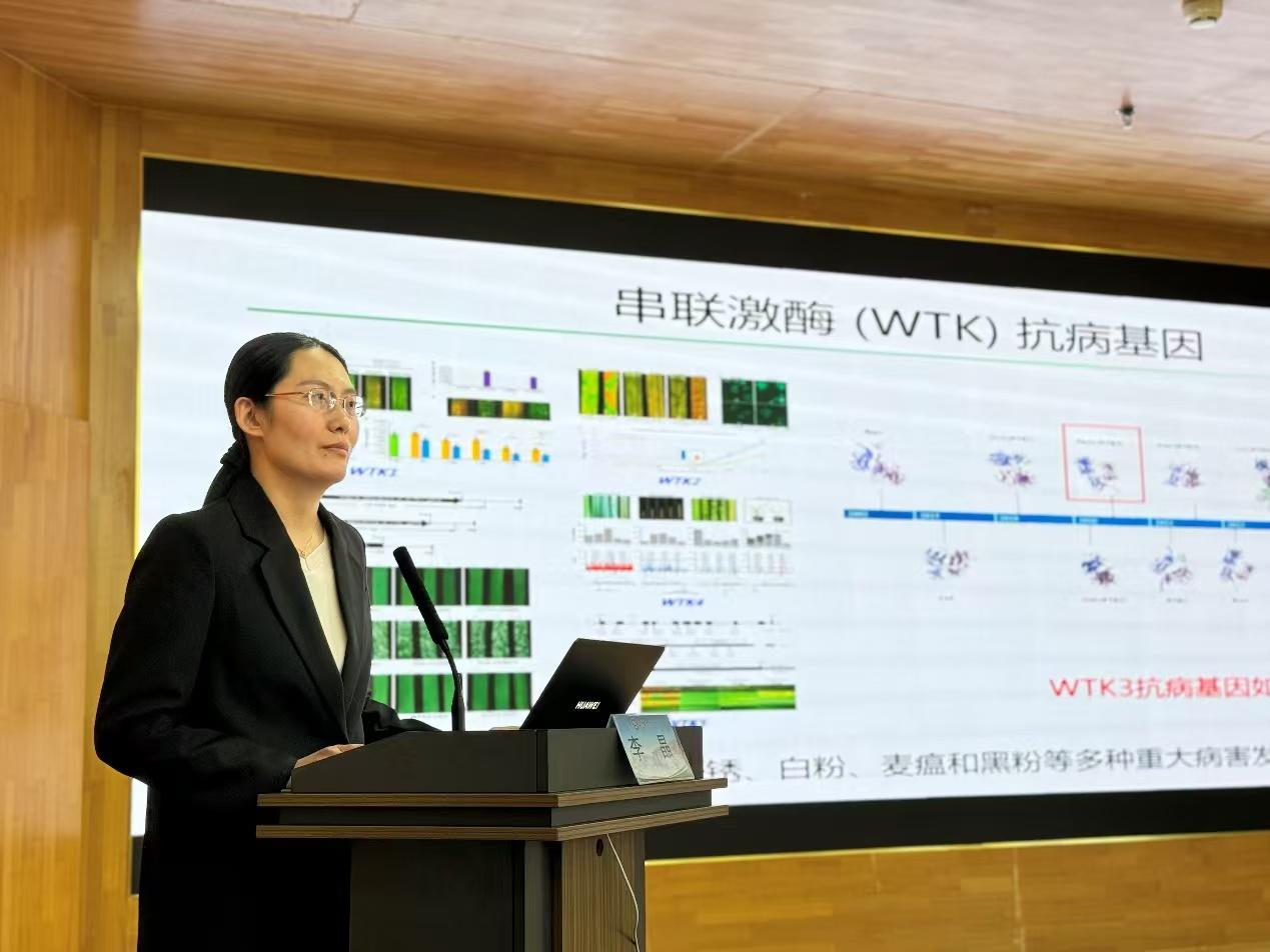 李晶博士以"串联激酶和NLR共同调控小麦对多种真菌病害的抗性"为题,系统介绍了从抗白粉病基因挖掘到作用机制解析的研究历程。团队通过构建遗传群体,利用图位克隆技术成功定位关键抗病基因,并通过蛋白互作等实验验证了WTN1-WTK3复合体对多种真菌病害的协同防御功能。这项历时多年的基础研究不仅阐明植物免疫新机制,更在作物抗病育种领域展现出重要应用前景。