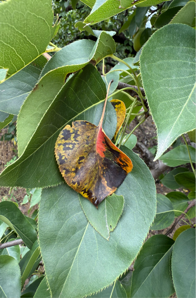 在田间实践中,贾临芳老师结合具体病例,向同学们详解病虫害特征与发生规律:梨木虱成虫和若虫群集于叶片背面吸食汁液,其分泌的白色蜡质物会污染叶片和果实;梨黑斑病在多雨天气易爆发,叶片和果实上形成凹陷的黑褐色病斑,严重时导致落叶落果;梨黑星病则以果实受害最为典型,病部产生黑色霉层,果实变小、畸形。