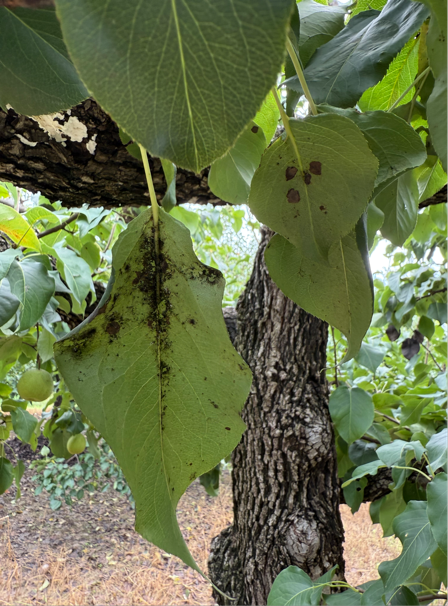 房山区琉璃河万亩梨园是当地梨产业技术创新与推广的重要平台,培育种植了京白梨、鸭梨、子母梨等多个优质品种,以绿色种植和品质提升为核心发展方向。时值初秋,正是梨树病虫害防控的关键期,实践团队重点对梨木虱、梨黑斑病、梨黑星病这三类影响梨果产量和品质的病虫害进行了系统调研。