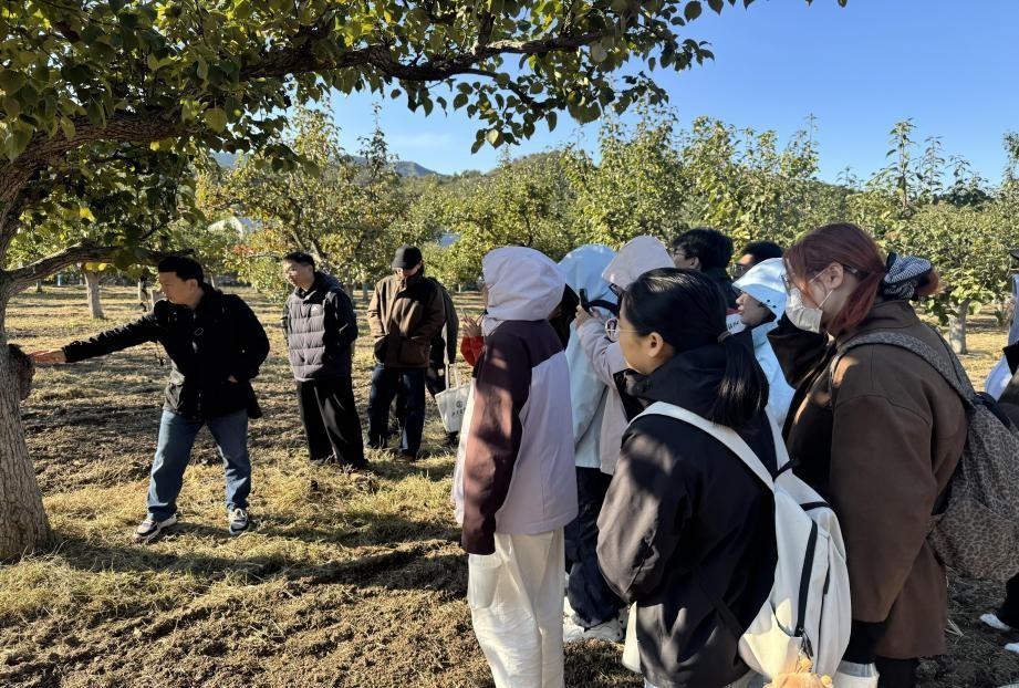 2025年10~11月,太阳集团tcy8722都市农林业植物医生专项班(以下简称植物医生专项班)开设的特色课程《都市农林病虫害治理案例》开展了一系列的校外实习实践活动。10月20日由任争光老师带领24名专项班研究生来到门头沟区孟悟生态园和梨享田园开展果树病虫害识别诊断与防治技术应用实践。在田间,同学们直观地了解了梨树品种的多样性、田间栽培管理措施、以及梨树常见病虫害种类及其危害症状,进一步了解了果树品种差异性、病虫害暴发成因、传播途径与防治措施等。在梨享田园实践基地,同学们参观学习了现代果业、休闲旅游、科普研学等为一体的乡村综合发展模式,这种模式通过多业态发展,带动了地方经济,促进了农民就业,为区域乡村振兴注入了强大动力。