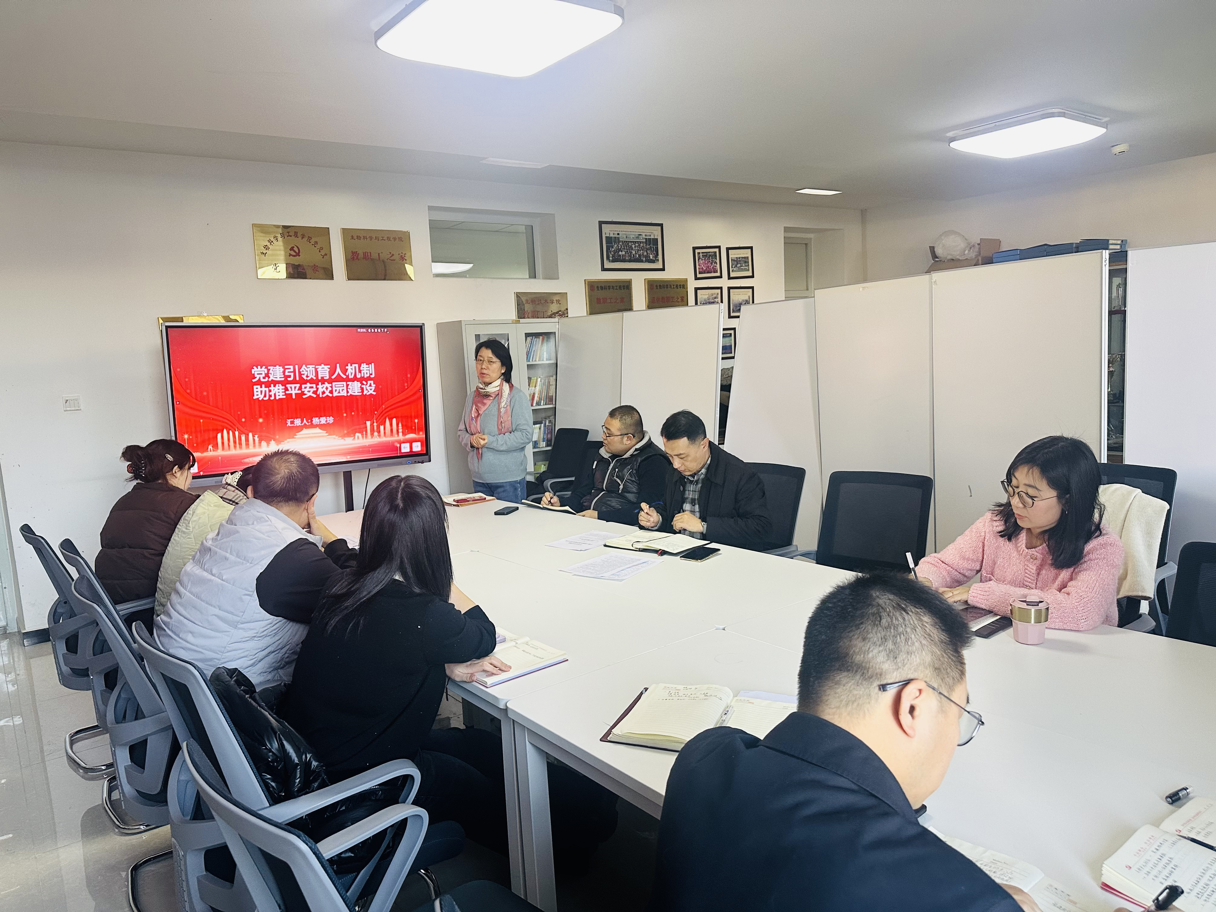为分享支部工作经验,促进互学互鉴,会议开展了党支部书记“微分享”第二期活动。重点实验室与实验中心教师党支部书记杨爱珍以“党建引领育人机制,助推平安校园建设”为主题,结合支部工作实际,从党建与教学科研融合、师生安全意识培育、实验室安全管理体系构建等方面,分享了支部以党建为引领,筑牢校园安全防线、赋能人才培养的实践经验。