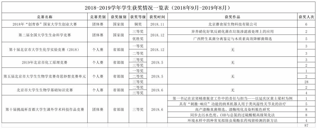 2018-2019学年学生获奖情况一览表(2018年9月-2019年8月)