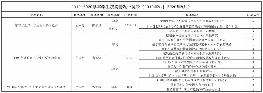 2019-2020学年学生获奖情况一览表(2019年9月-2020年8月)