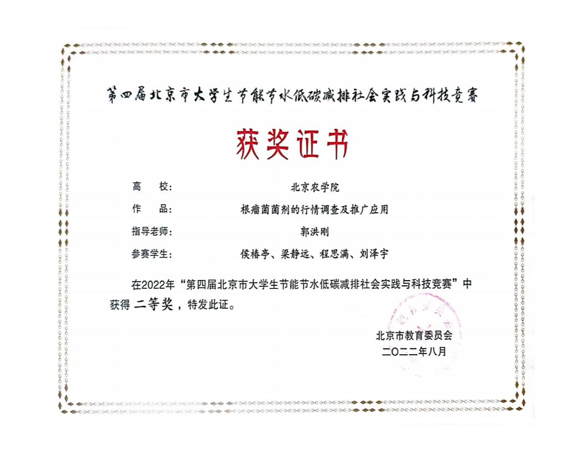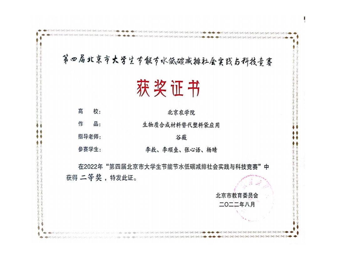 第四届北京市大学生节能节水低碳减排社会实践与科技竞赛 二等奖