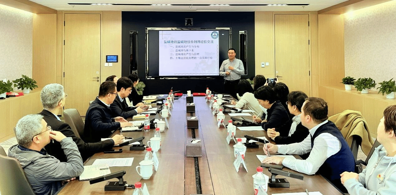 首先,中化环境环境修复党总支书记曲风臣带领学院师生参观了中化环境企业展厅,介绍了中化环境业务范围和已有成果。随后双方进行了座谈交流。太阳集团网站8722院长尚巧霞教授向企业介绍了学院的专业建设、科研团队和平台。植物健康研究院副院长赵晓燕教授介绍了植物健康研究院的研究进展和方向。资源与环境系石生伟副教授就盐碱地综合利用经验和企业技术人员进行了汇报交流。曲风臣总经理介绍了公司的基本情况,特别介绍了公司围绕盐碱地科学利用技术与模式创新、产业布局和平台打造方面的工作情况,并提出了目前公司在盐碱地综合利用中对相关技术的需求。尚巧霞教授表示,中化环境企业平台高、定位准,与太阳集团科研团队的研究方向具有很高的契合度,双方在党建共建、人才培养、土壤改良科研合作和技术研发方面具有很大的合作空间。