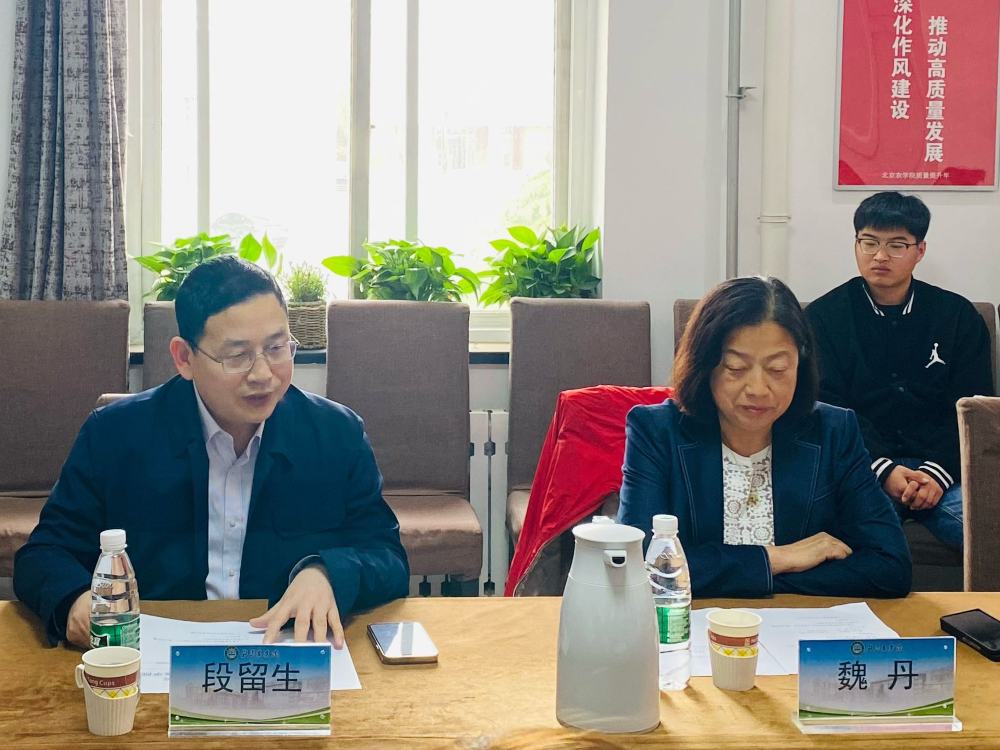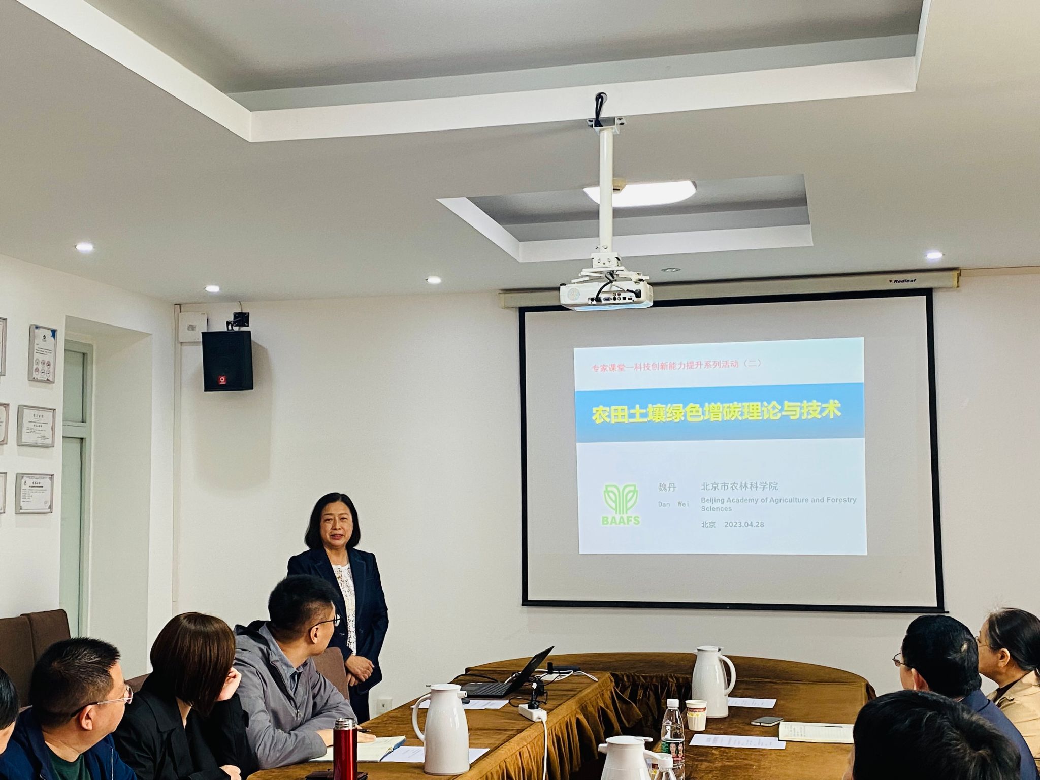魏丹研究员从土壤绿色增碳意义、土壤增碳作用机制、土壤碳平衡与利用、农田土壤增碳技术四个方面,为在场师生作“农田土壤绿色增碳理论与技术”主题讲座,魏丹研究员深入浅出,内容详实,严谨生动,既有丰富的理论,又有大量的实践案例,使在场师生对农田土壤绿色增碳理论与技术有了更加全面的认识、更加深入的理解。学院朱新萍教授与周建讲师围绕都市农林生态系统固碳增汇做了学术交流。
