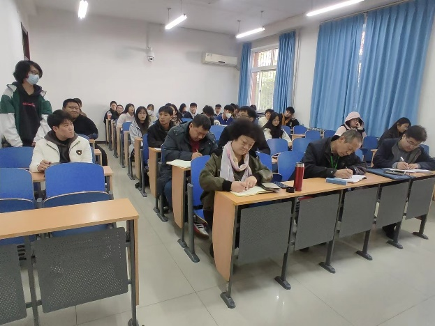 孙祎振老师以审核评估要点为切入点,从毕业论文、课堂教学、教学设计等方面生动诠释了“以学为中心,以教为主导”的教学理念,并解读了教学评价体系中新的变化。学生反馈了希望增加实践机会、优化课程体系、增加课后辅导等需求,学院将逐步改进教学工作水平,重视学生收获。