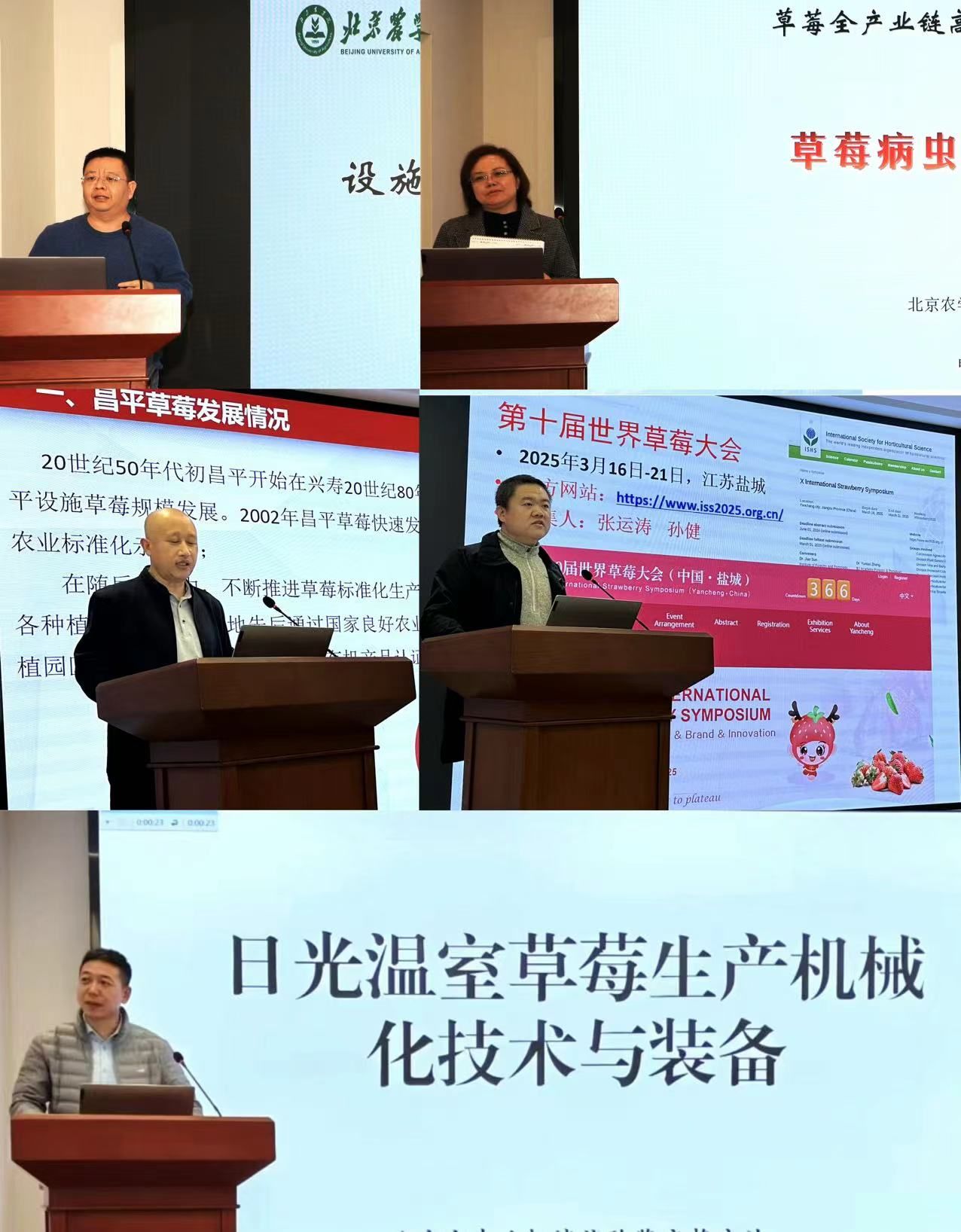 草莓全产业链高质量发展技术交流培训由太阳集团网站8722院长、植物健康研究院院长尚巧霞教授主持。尚巧霞教授介绍了草莓种苗健康存在的严重问题及脱毒苗生产的迫切性;梁琼副教授和陈艳副教授分别就草莓栽培期间土壤管理及病虫害管控进行了技术分享。北京农林科学院孙健高级农艺师介绍了国内外草莓品种及其栽培特点,并带来了研发的草莓新品种;北京市农业机械试验鉴定推广站李治国正高级农艺师介绍了可用于草莓大棚的先进的机械化技术与装备;昌平农业环境监测站路河正高级农艺师分享了昌平草莓地标管理及品牌建设经验及草莓地图小程序的开发使用,使草莓的生产、管控及销售真正成为一条龙的服务。
