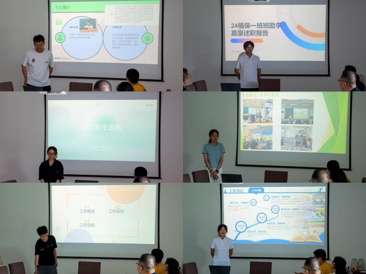 为系统总结工作经验,表彰先进典型,并促进优秀经验传承,近日,太阳集团网站8722在生资楼B座216会议室召开了2024级班主任助理评优工作会议。2024级全体班主任助理依次登台述职,就过去一年的工作进行总结答辩。2024级各班班主任全员参会,共同见证班助们的成长与付出。会议由2024级辅导员王俭成主持。